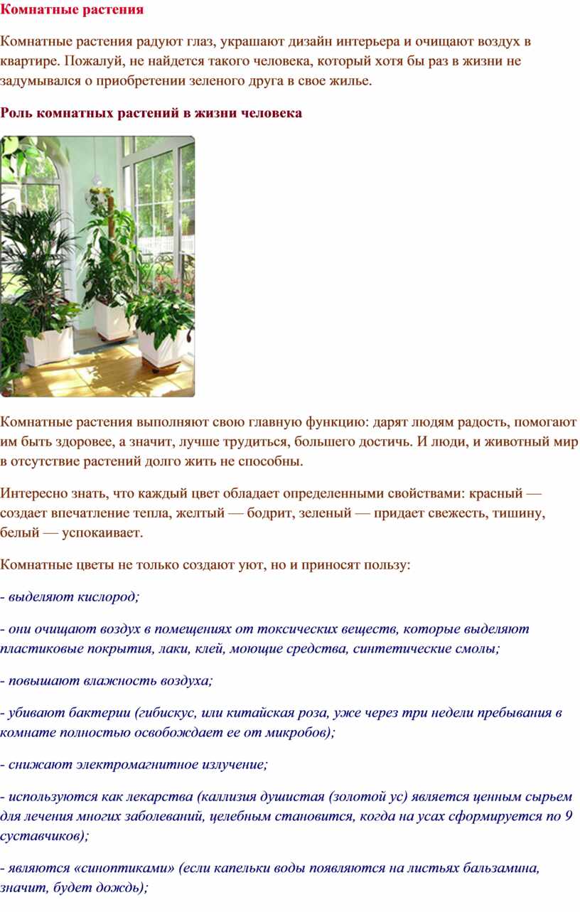 Роль комнатных растений в жизни человека