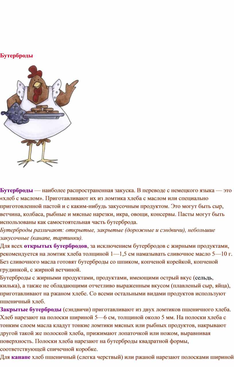 Особенностью бутербродов является то, что их приготавливают не