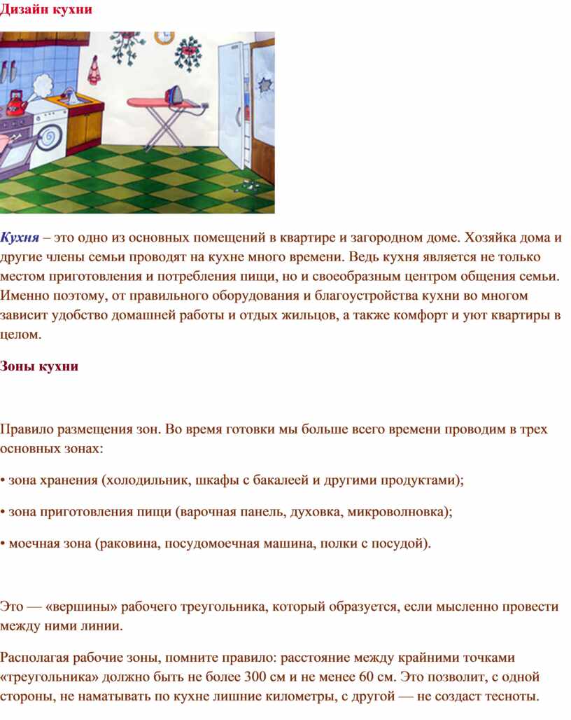 Правило размещения зон. Во время готовки мы больше всего времени проводим в трех основных зонах: