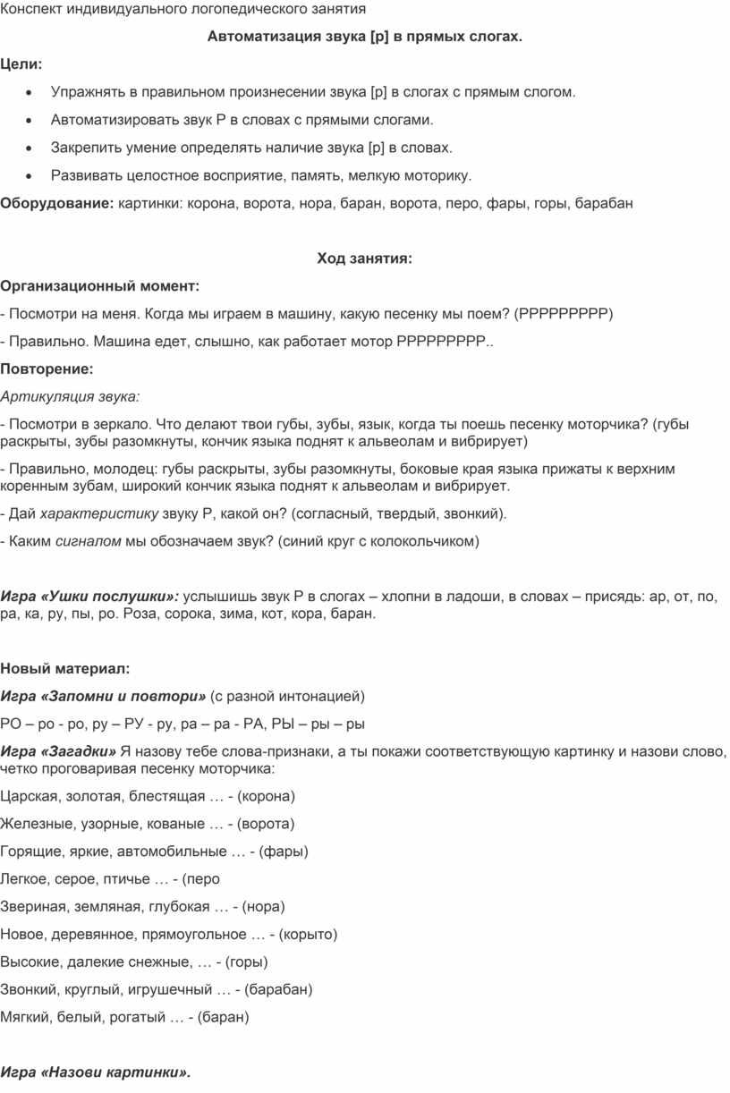 · Упражнять в правильном произнесении звука [р] в слогах с прямым слогом.