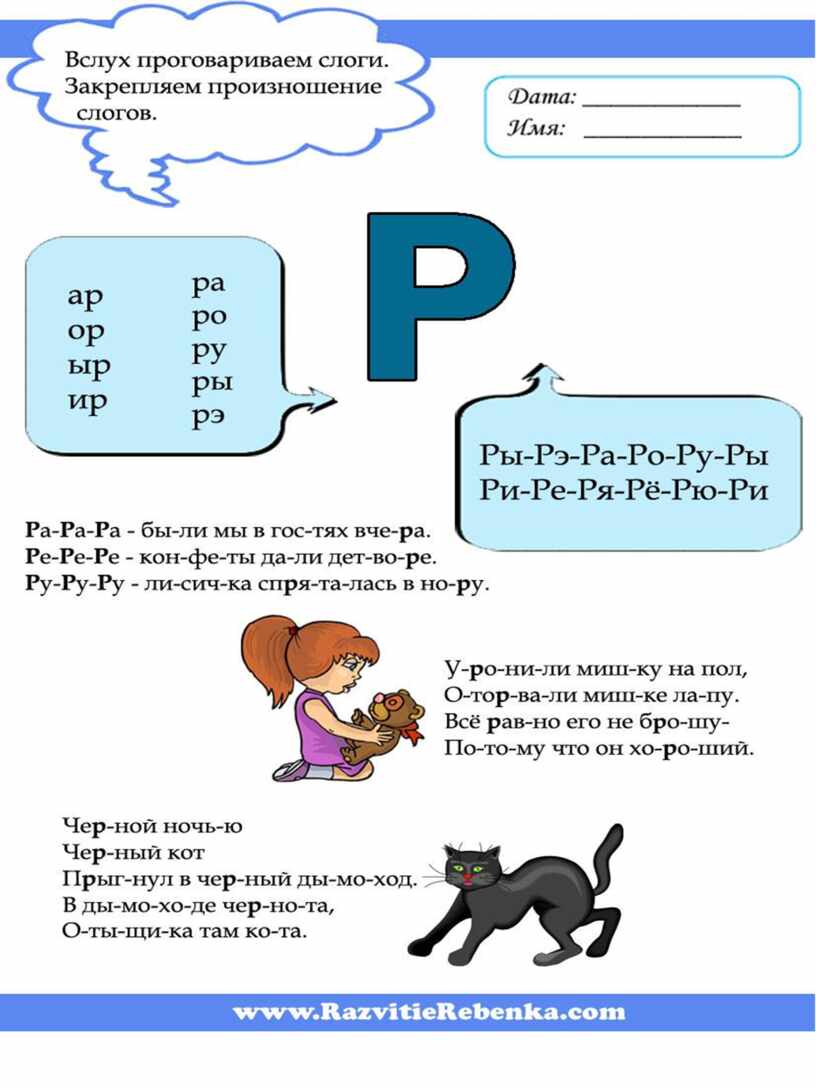 повторять за логопедом слоговые ряды: РА-АРА, РО-ОРО, РУ-УРУ, РЫ-ЫРЫ, РЭ-ЭРЭ (проговариваем слоговую цепочку несколько раз, каждый