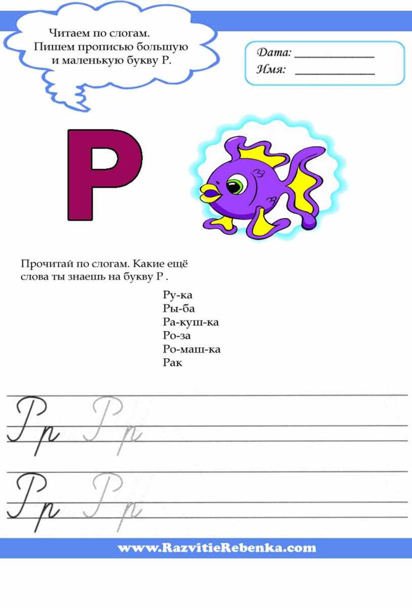 из букв разрезной азбуки составить слоги: РА, РО, РУ, РЫ;