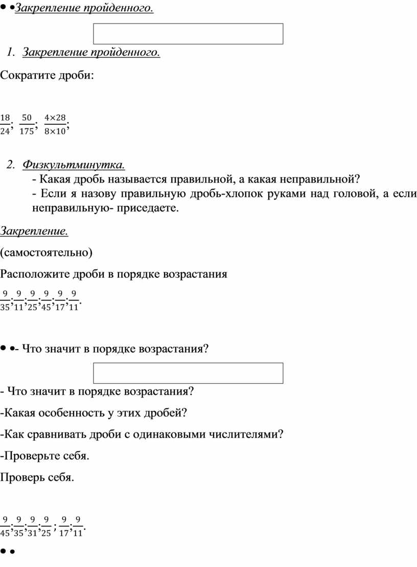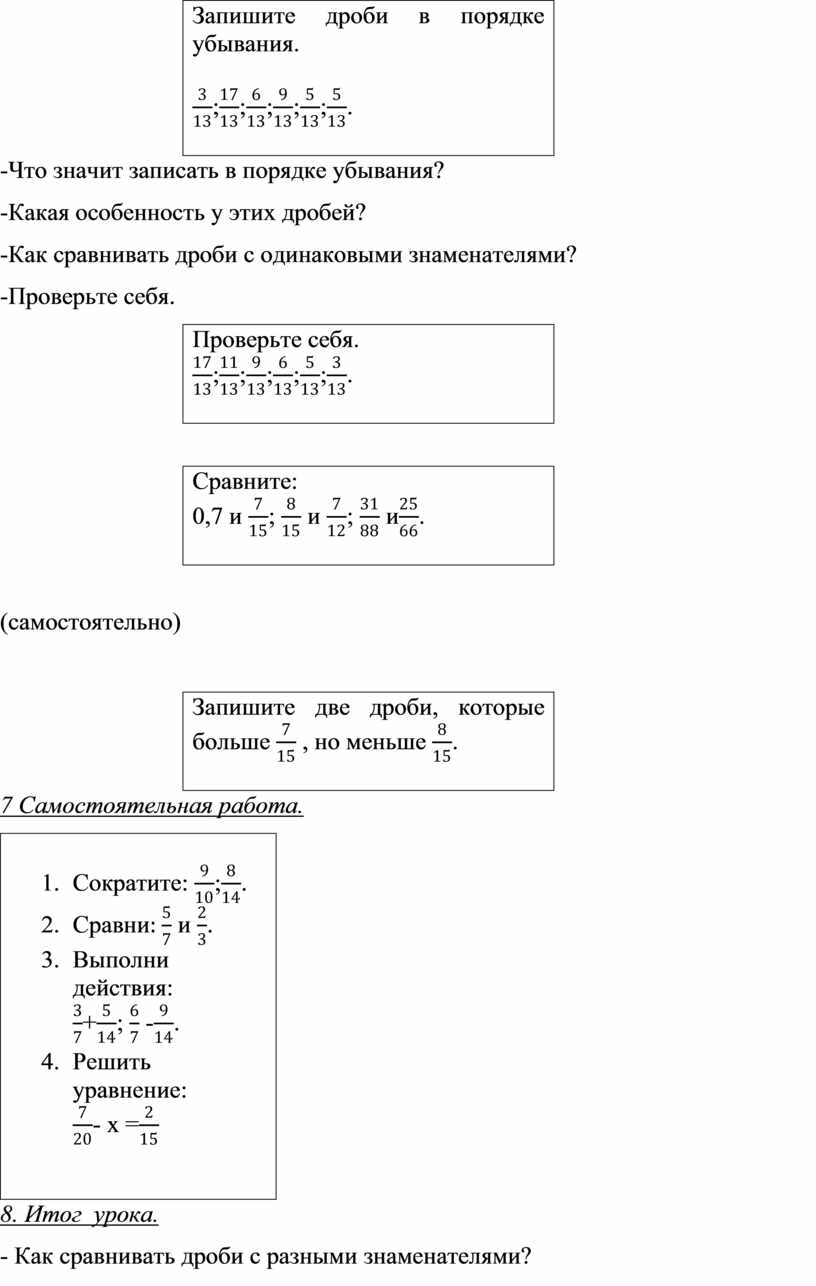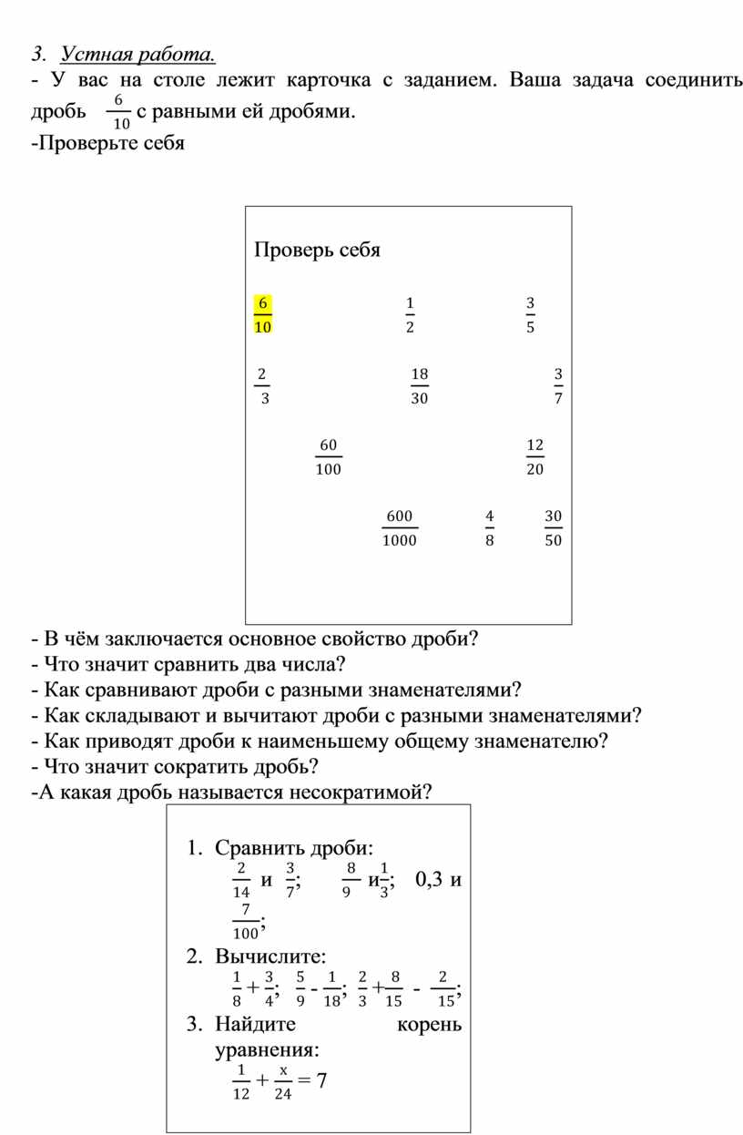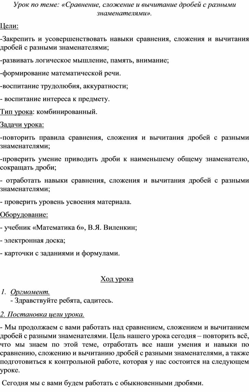 Урок по теме: «Сравнение, сложение и вычитание дробей с разными знаменателями».