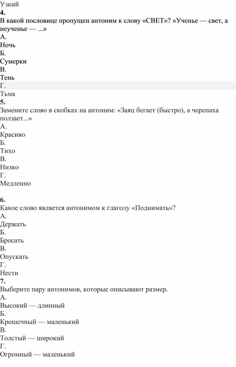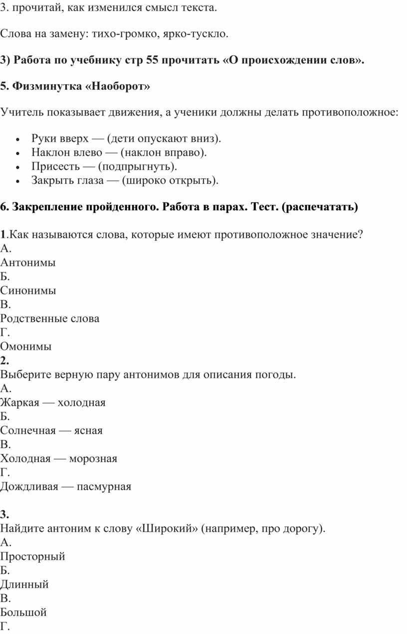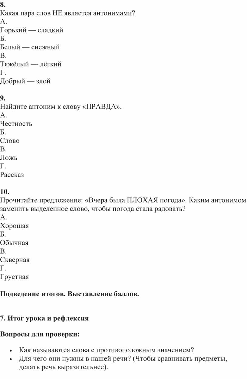 1.Как называются слова, которые имеют противоположное значение?