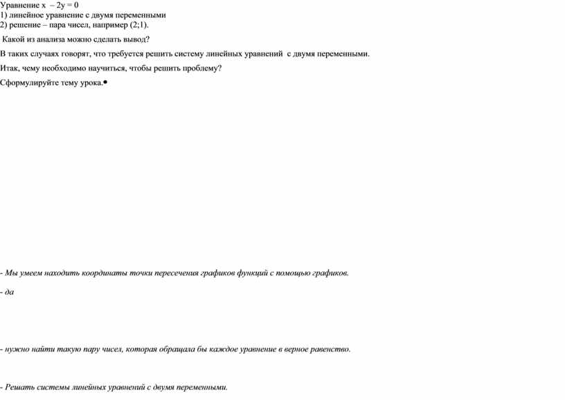 Ввести понятие системы линейных уравнений с двумя переменными, познакомить обучающихся со способами решения систем линейных уравнений с двумя переменными |