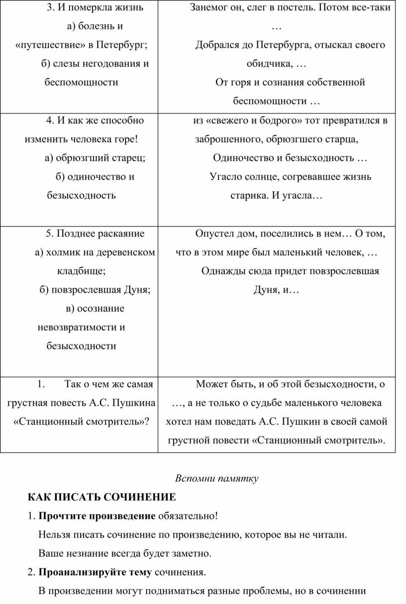 3. Подготовиться к сочинению по повести А.С. Пушкина «Станционный смотритель».