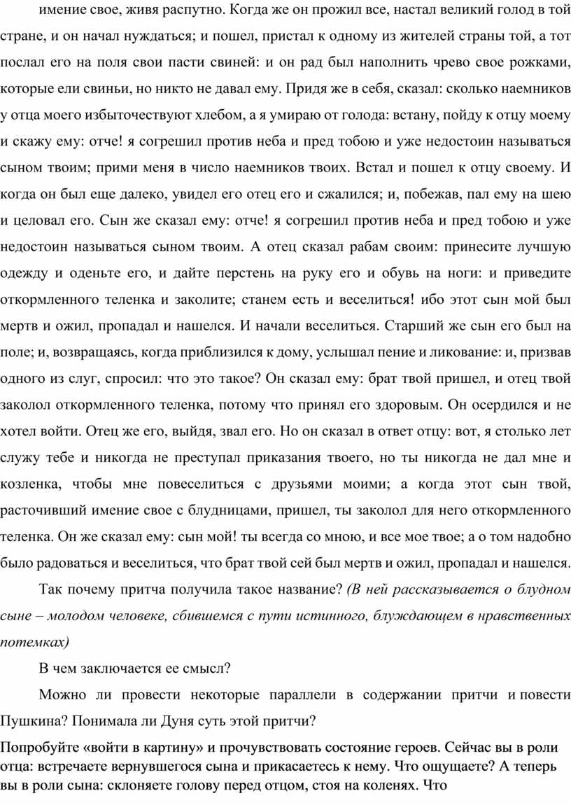 Можно ли провести некоторые параллели в содержании притчи и повести Пушкина? Понимала ли Дуня суть этой притчи?