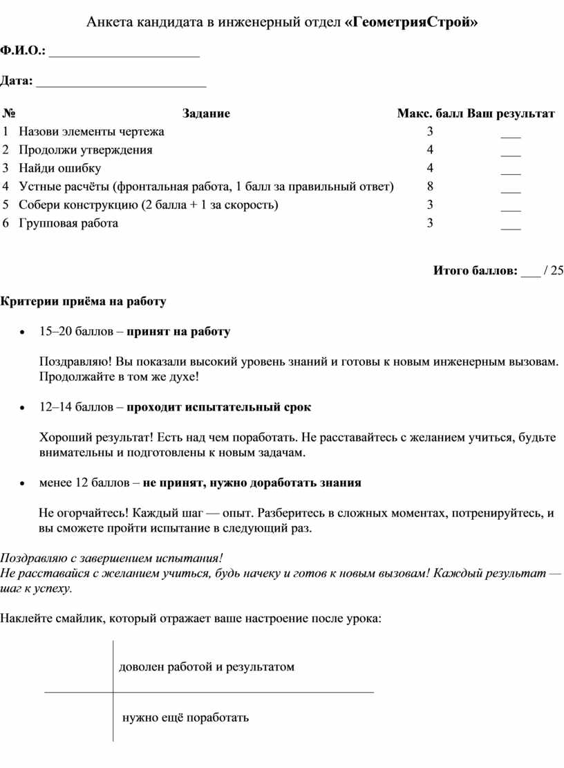Анкета кандидата в инженерный отдел «ГеометрияСтрой»