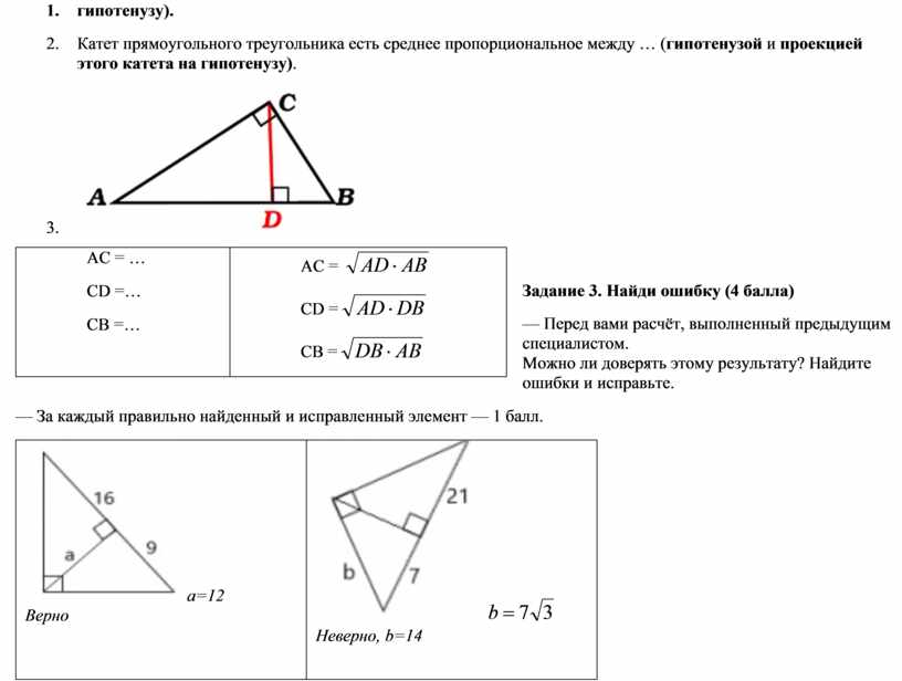 Пропорциональные отрезки в прямоугольном треугольнике |