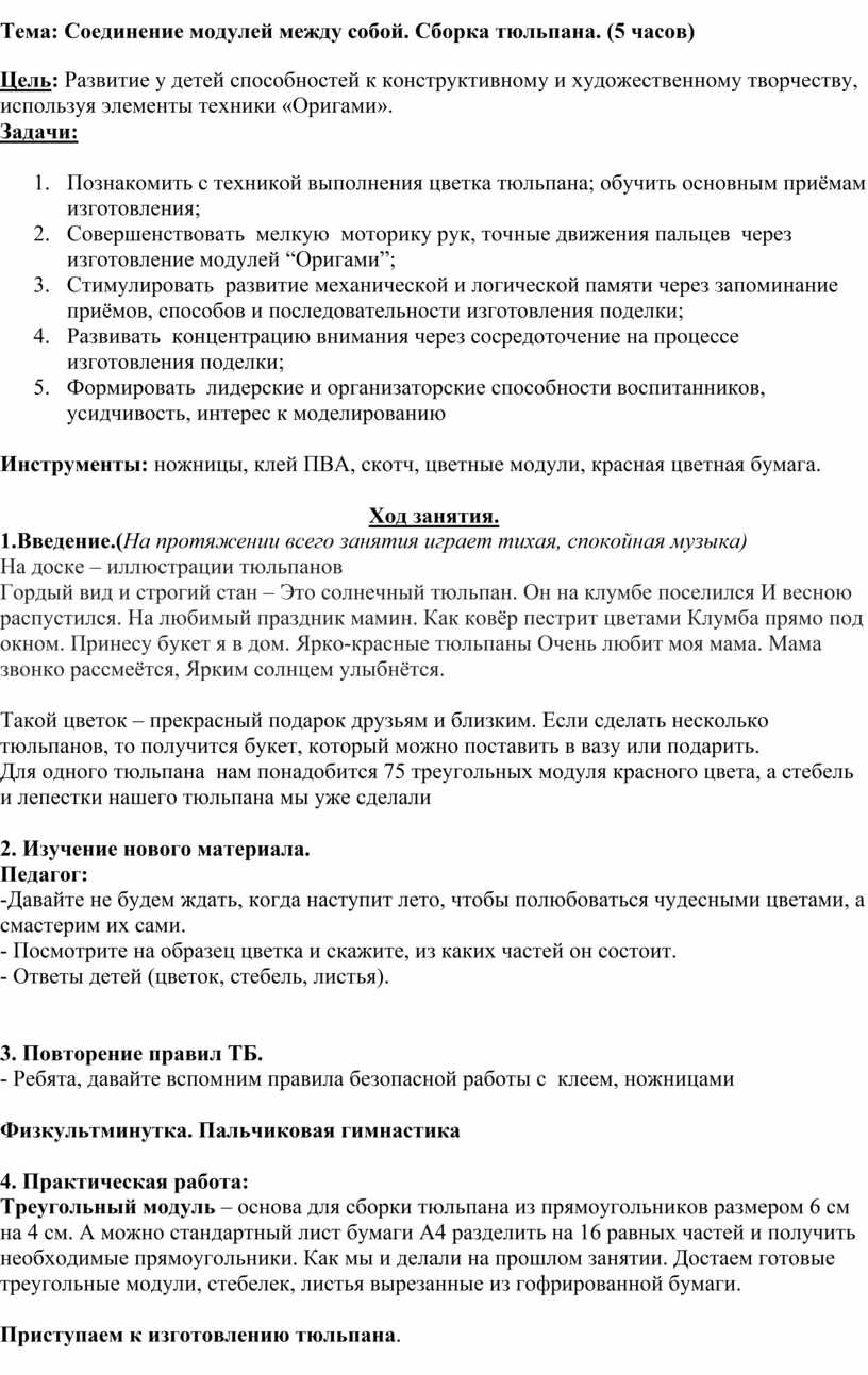 Тема: Соединение модулей между собой. Сборка тюльпана. (5 часов)