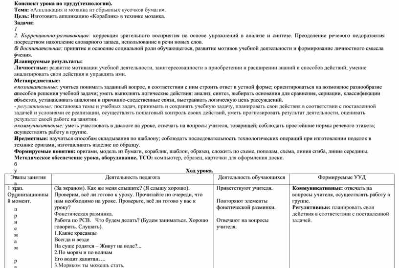 Конспект урока по труду(технологии).