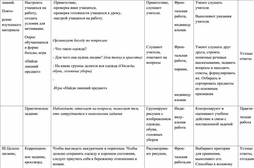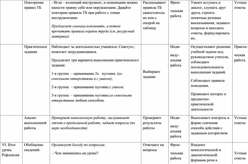 Объяснительно-иллюстративный, практический; индивидуальная, фронтальная |