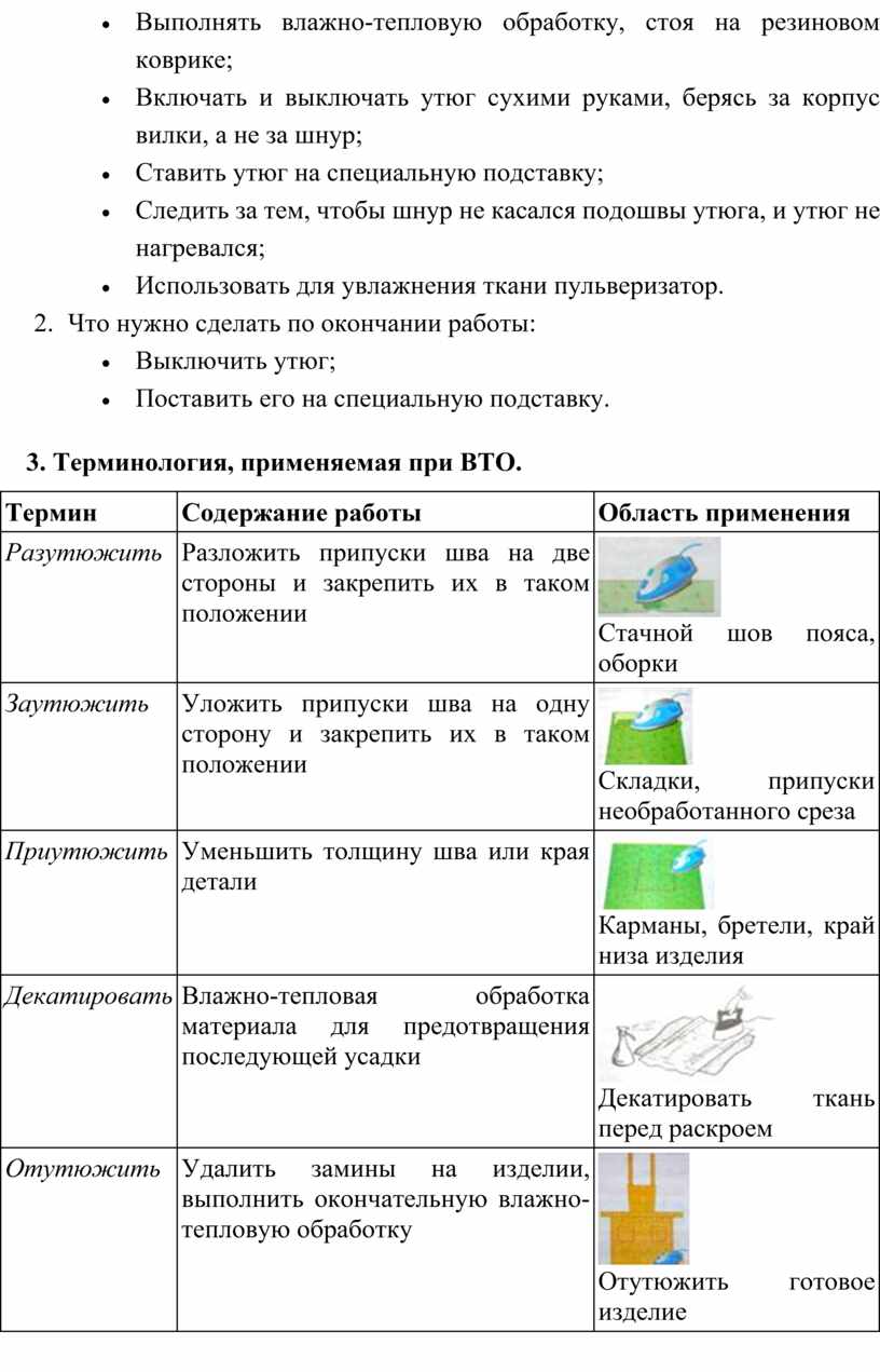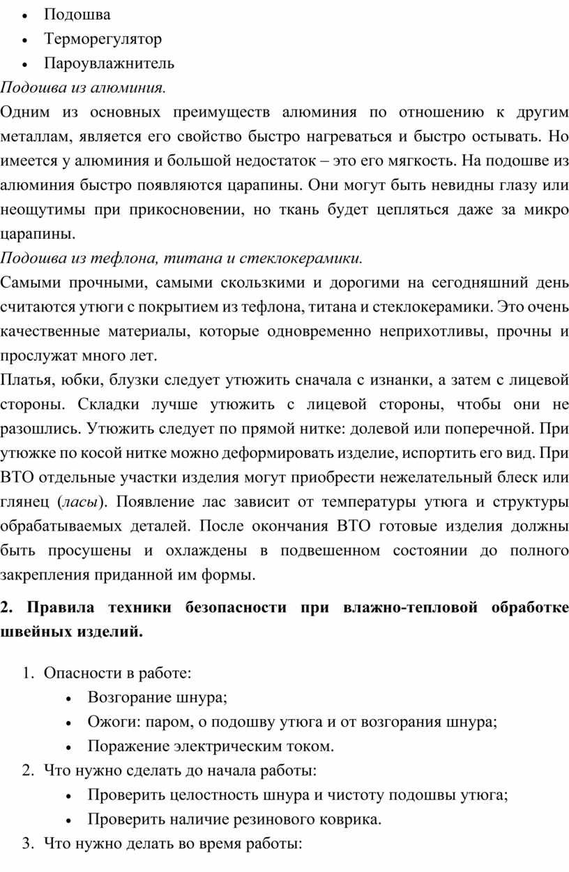 2. Правила техники безопасности при влажно-тепловой обработке швейных изделий.