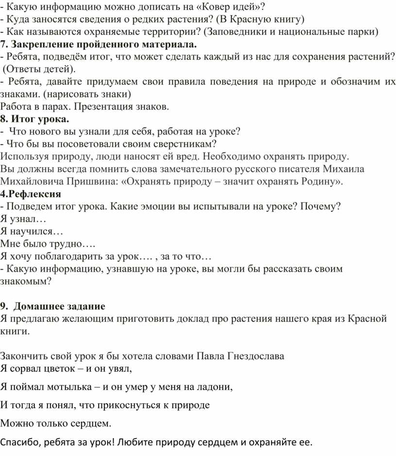 - Ребята, подведём итог, что может сделать каждый из нас для сохранения растений?