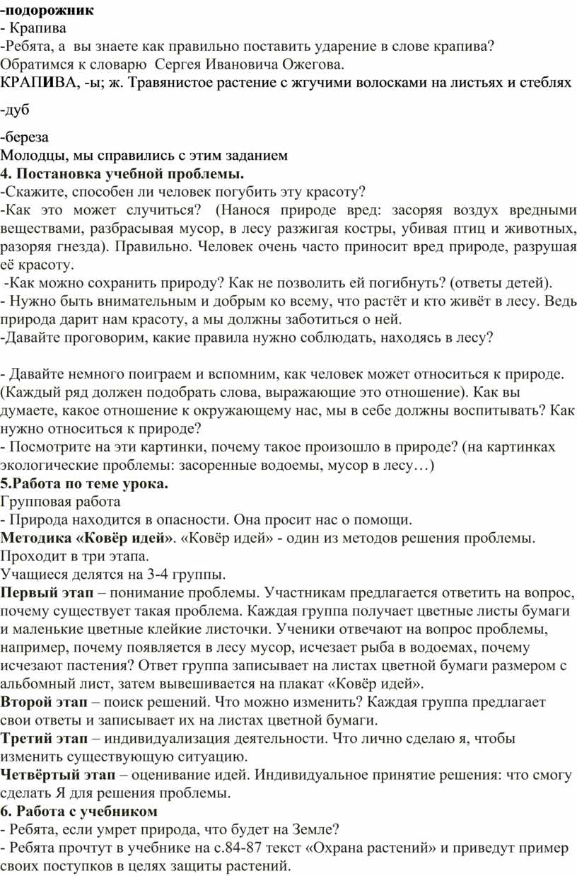- Ребята прочтут в учебнике на с.84-87 текст «Охрана растений» и приведут