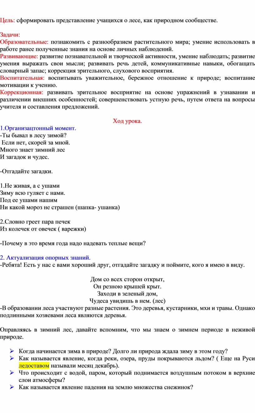 Цель: сформировать представление учащихся о лесе, как природном сообществе.