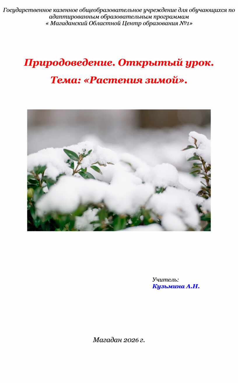 Тема: «Растения зимой».