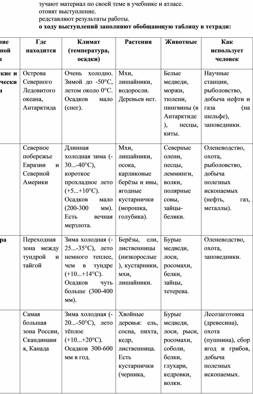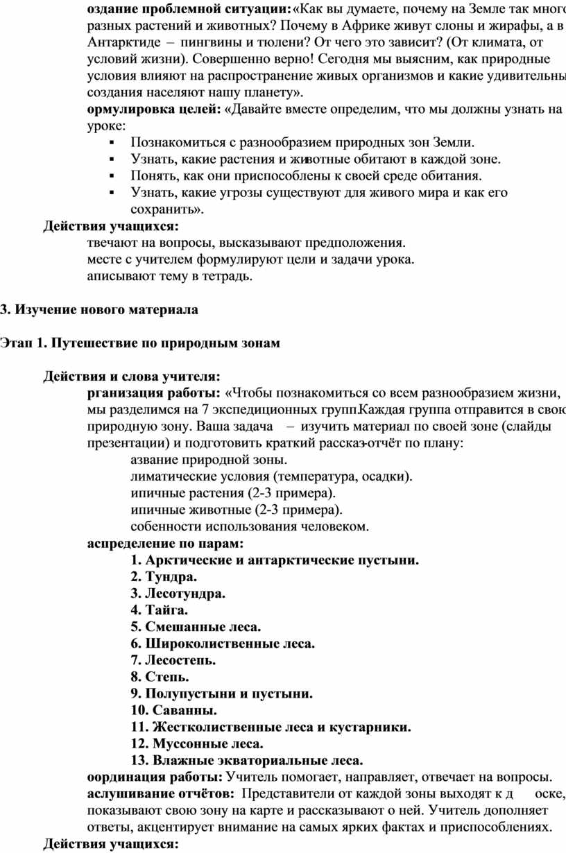 Тип урока: урок изучения нового материала (урок-путешествие по природным зонам)