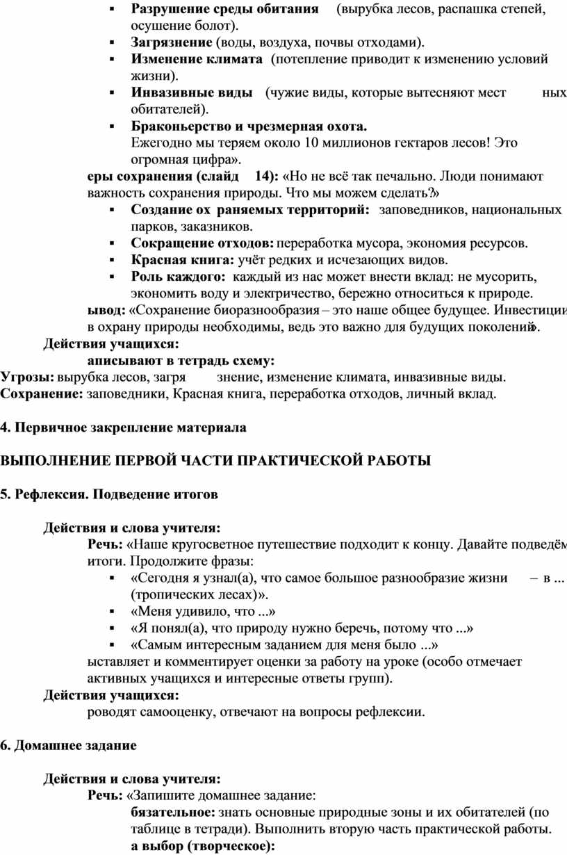 Этап 3. Угрозы биоразнообразию и его сохранение