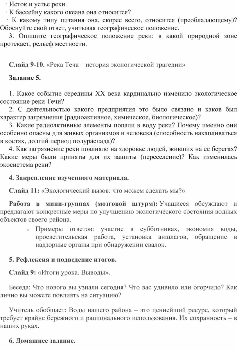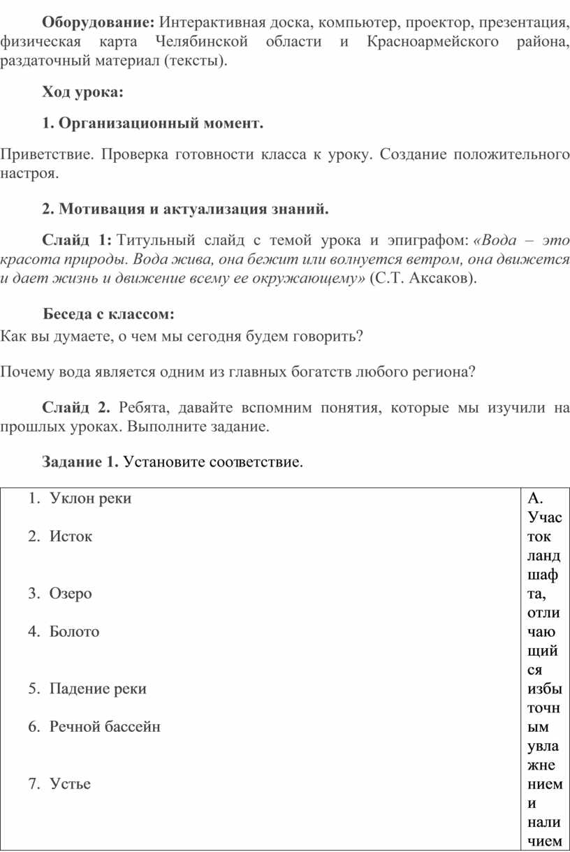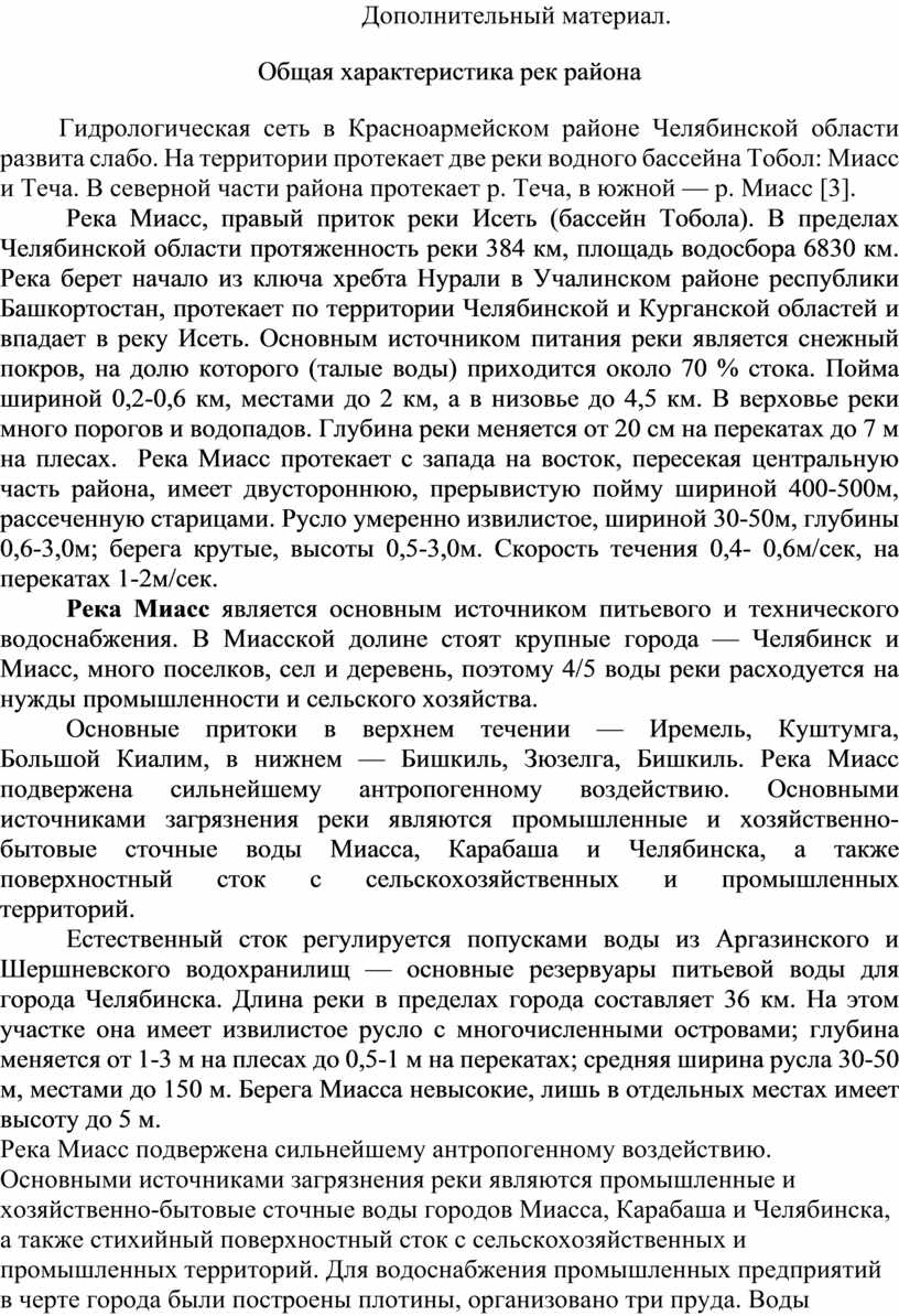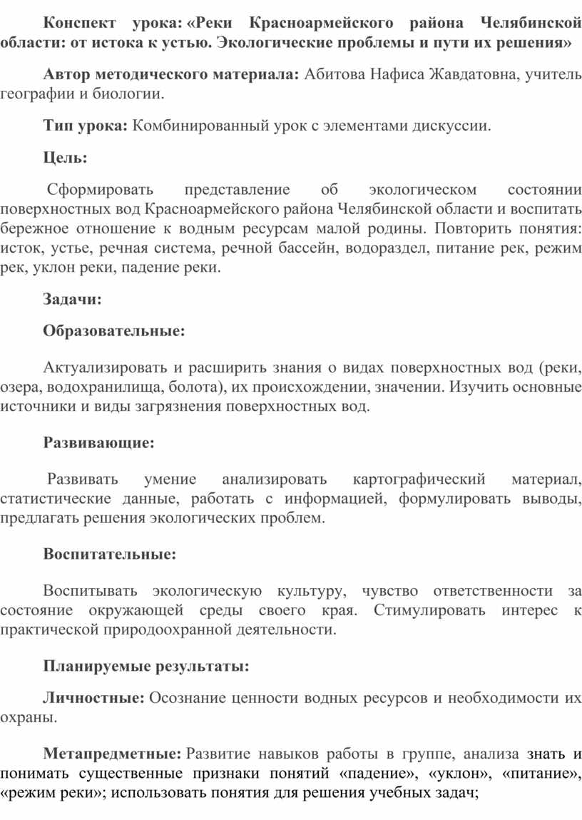 Конспект урока: «Реки Красноармейского района Челябинской области: от истока к устью. Экологические проблемы и пути их решения»