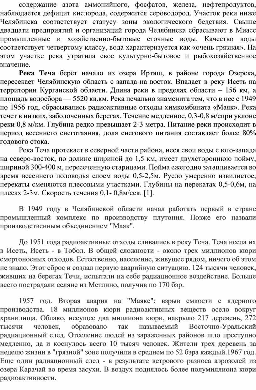1. Какое событие середины XX века кардинально изменило экологическое состояние реки Течи?