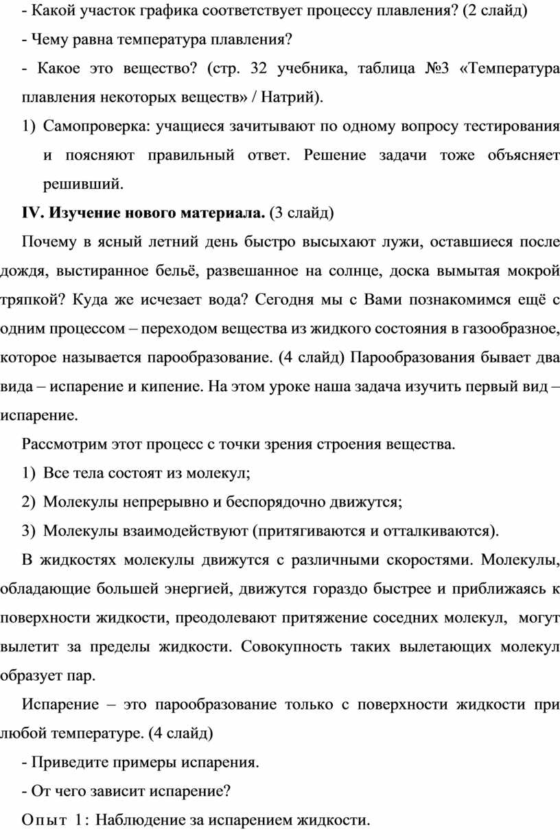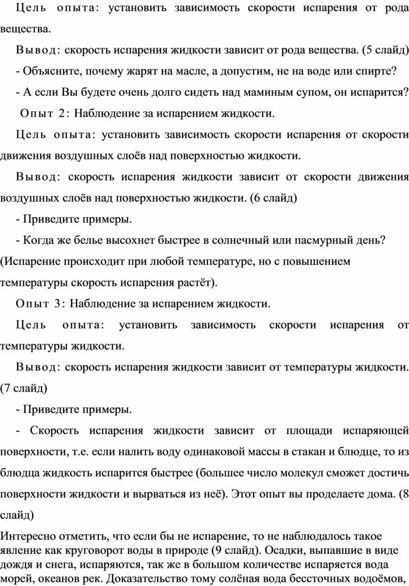 - Когда же белье высохнет быстрее в солнечный или пасмурный день? (Испарение происходит при любой температуре, но с повышением температуры скорость испарения растёт).