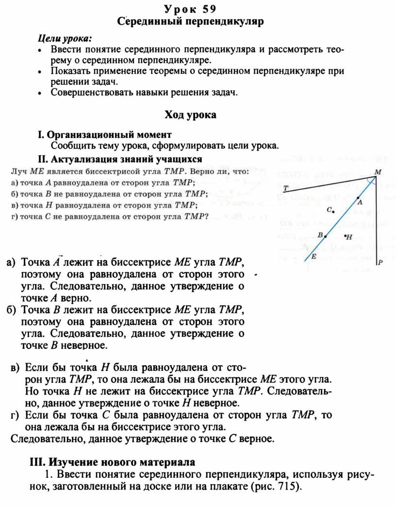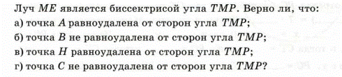 Каждая точка биссектрисы неразвёрнутого угла равноудалена от его сторон. А каждая точка серединного перпендикуляра к отрезку равноудалена от концов этого отрезка. Следовательно, точкой равноудаленной от сторон угла и равноудаленной от концов отрезка, будет точка пересечения биссектрисы данного угла и серединного перпендикуляра к данному отрезку.