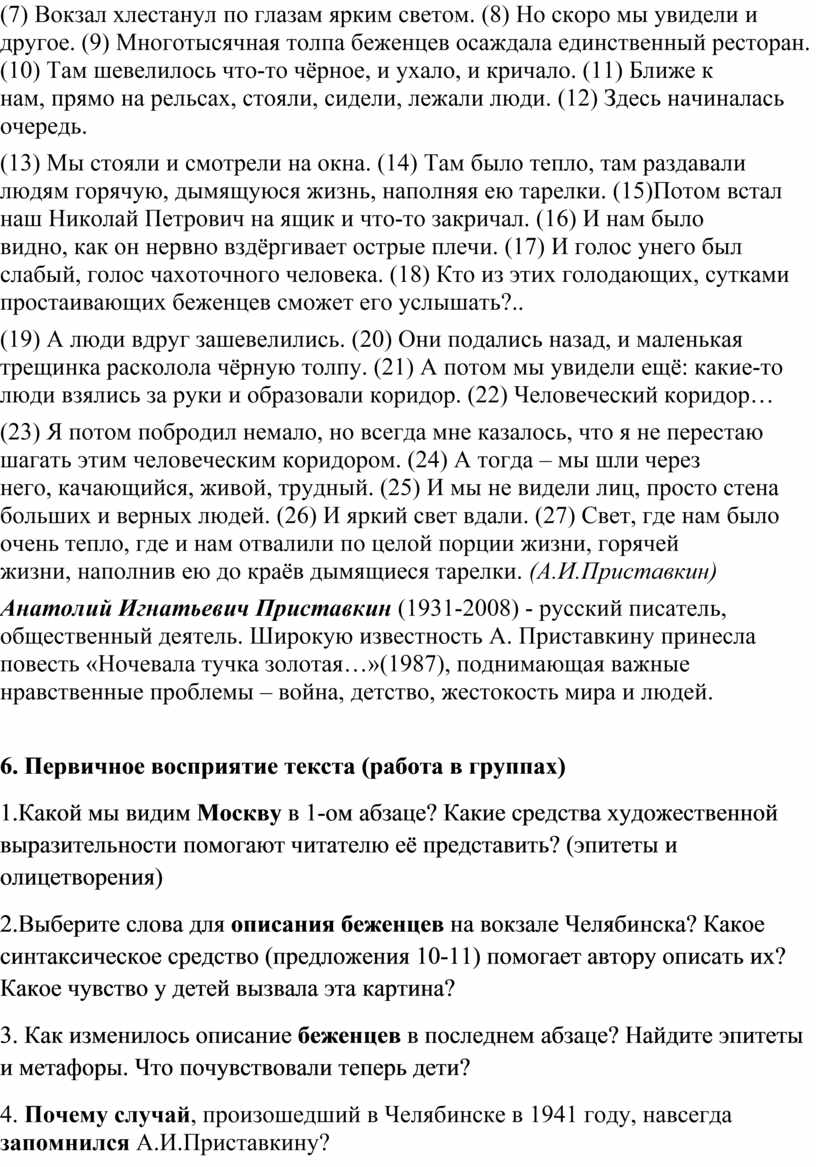 5. Работа с текстом А.Приставкина. Анализ текста.