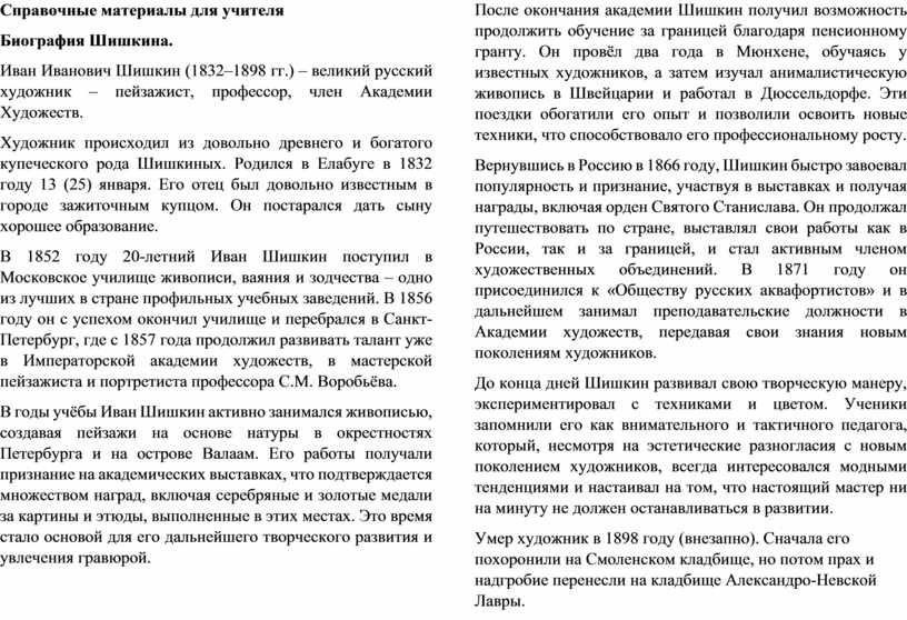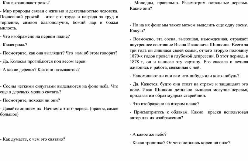 1. Познакомить с биографией И. И. Шишкина, с его картиной «Рожь»..