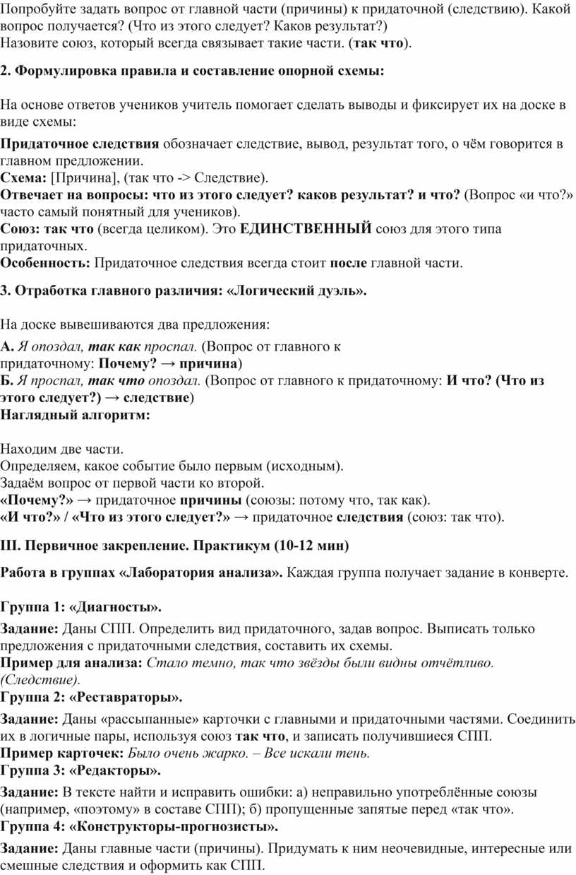 2. Попробуйте задать вопрос от главной части (причины) к придаточной (следствию). Какой вопрос получается? (Что из этого следует? Каков результат?)