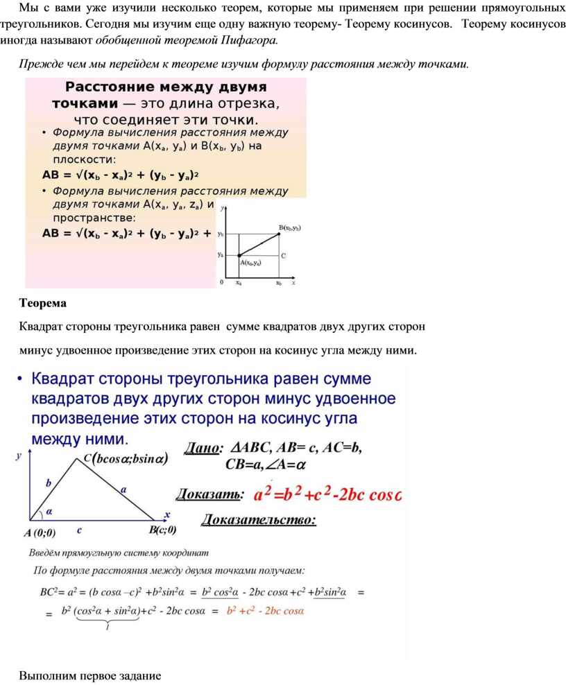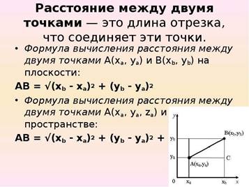Прежде чем мы перейдем к теореме изучим формулу расстояния между точками.