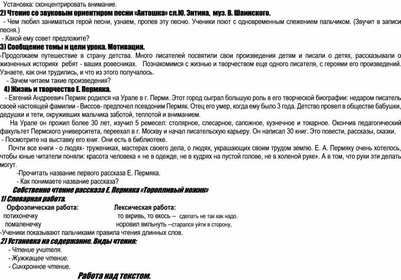 Цель: создать условия для знакомства с жизнью и творчеством Е. Пермяка.