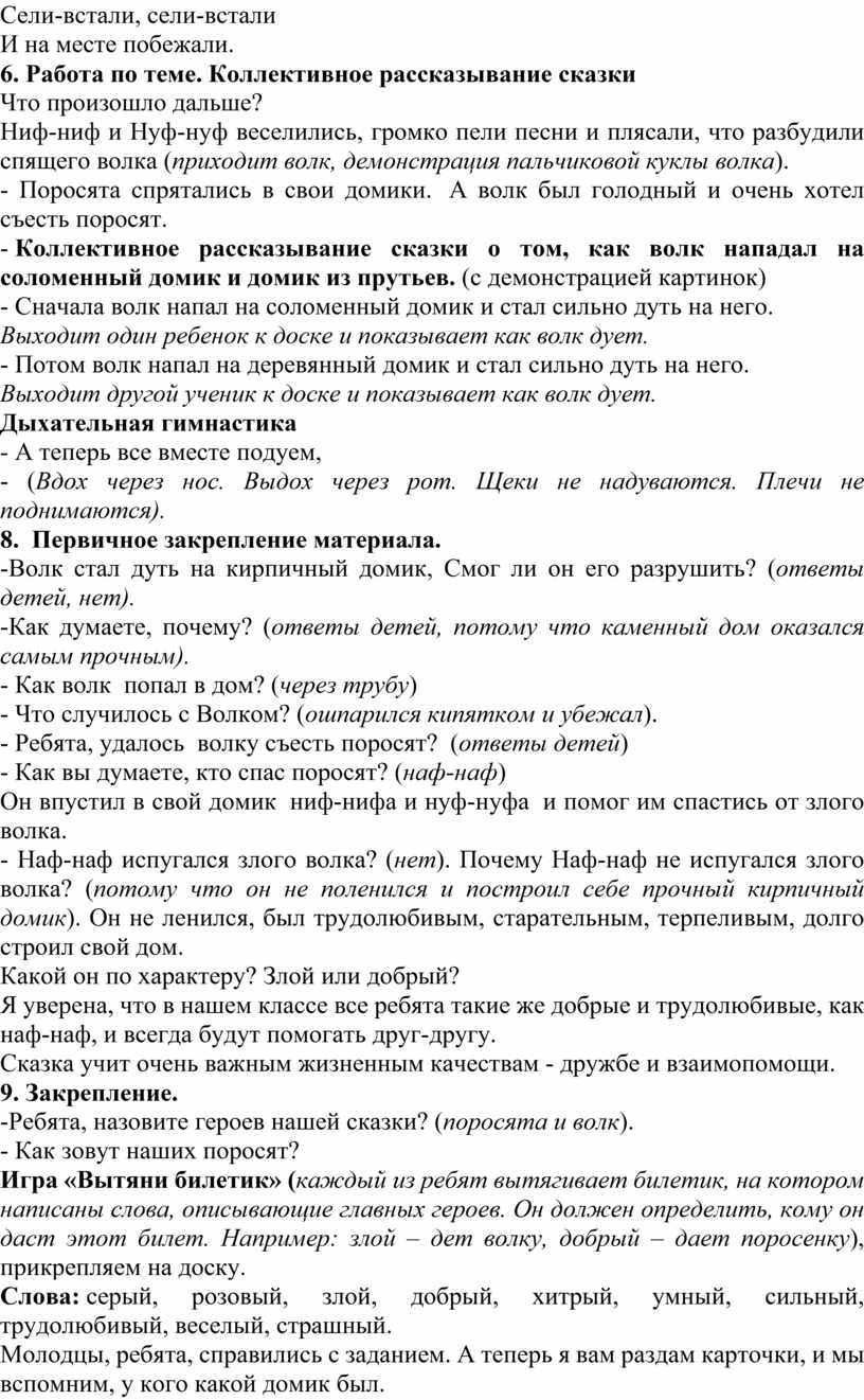 Цель: обобщить и систематизировать знания обучающихся по сказке «Три поросенка»