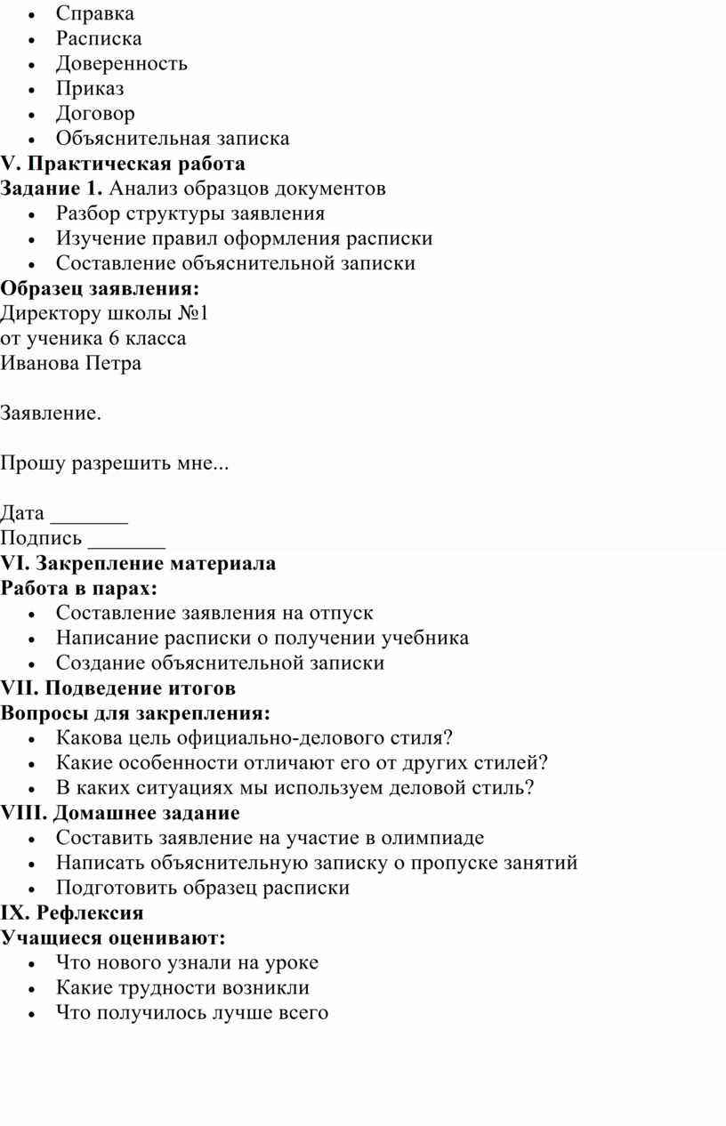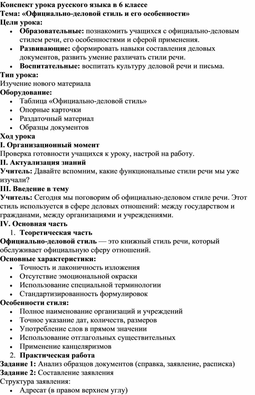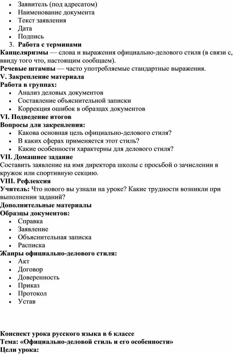 - Образовательные: познакомить учащихся с официально-деловым стилем речи, его