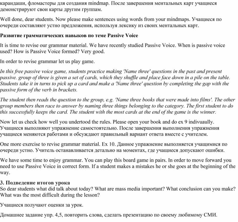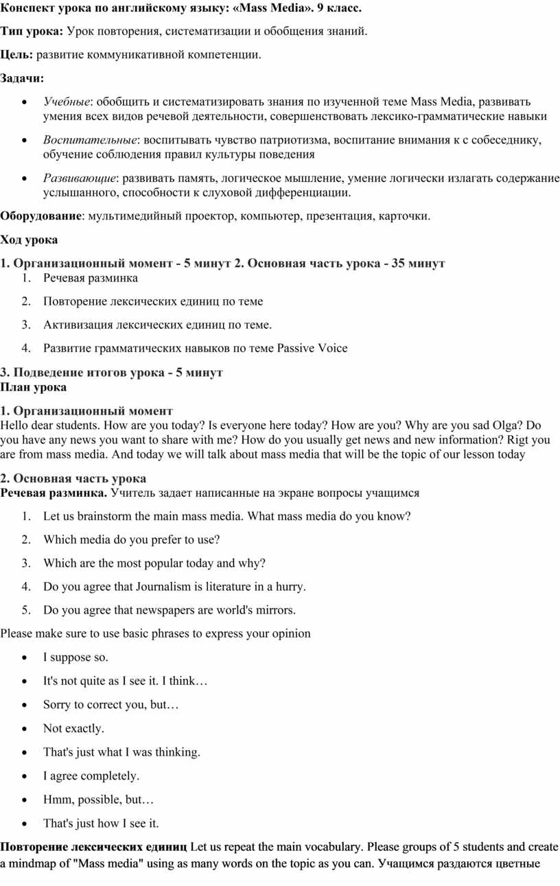 Конспект урока по английскому языку: «Mass Media». 9 класс.
