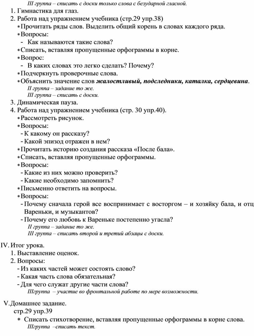 IIIгруппа – участие во фронтальной работе по мере возможности.