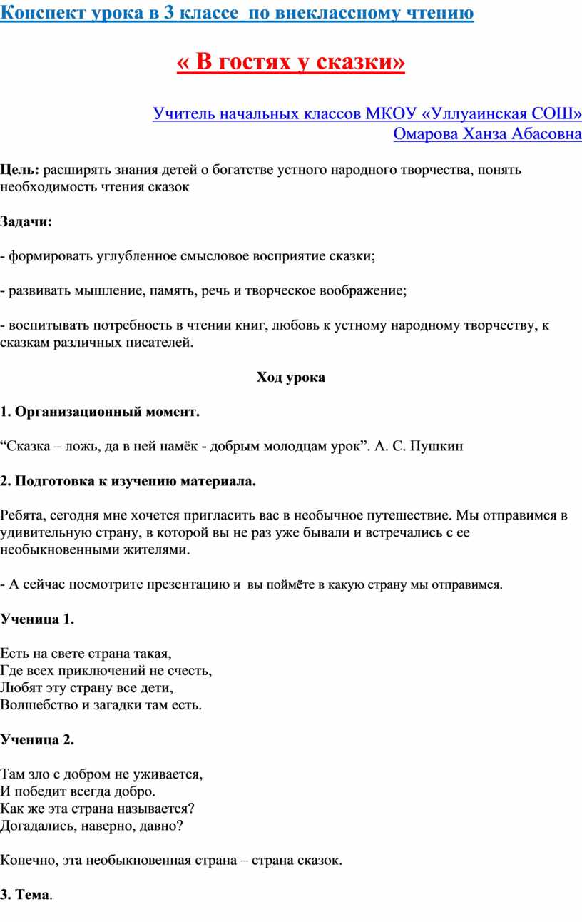 “Сказка – ложь, да в ней намёк - добрым молодцам урок”. А. С. Пушкин