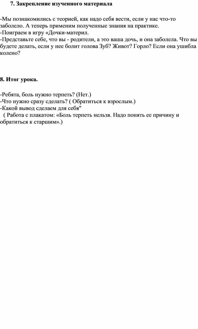-Ребята, если вы почувствовали боль, что надо сделать в первую очередь? (Обратиться к старшим.)