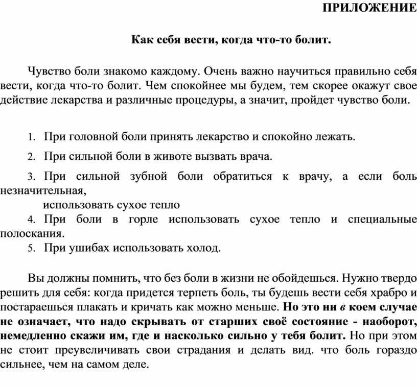 -А как нам нужно себя вести, если мы ощущаем физическую боль? Об этом вы узнаете, познакомившись с содержанием текста «Как себя вести, когда что-то болит».
