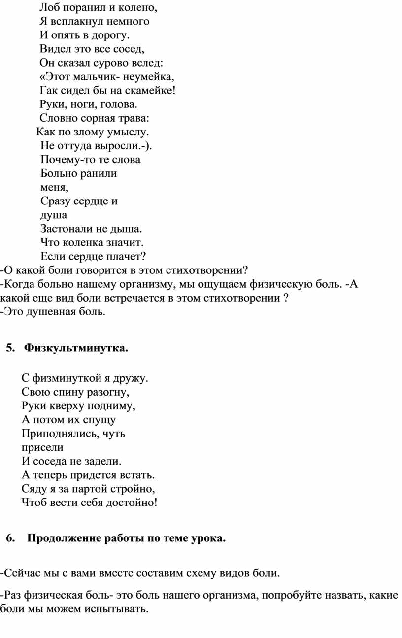 -Мы выяснили, что наш организм может чувствовать боль. Существуют различные виды боли, а какие именно, вы определите, прослушав стихотворение.