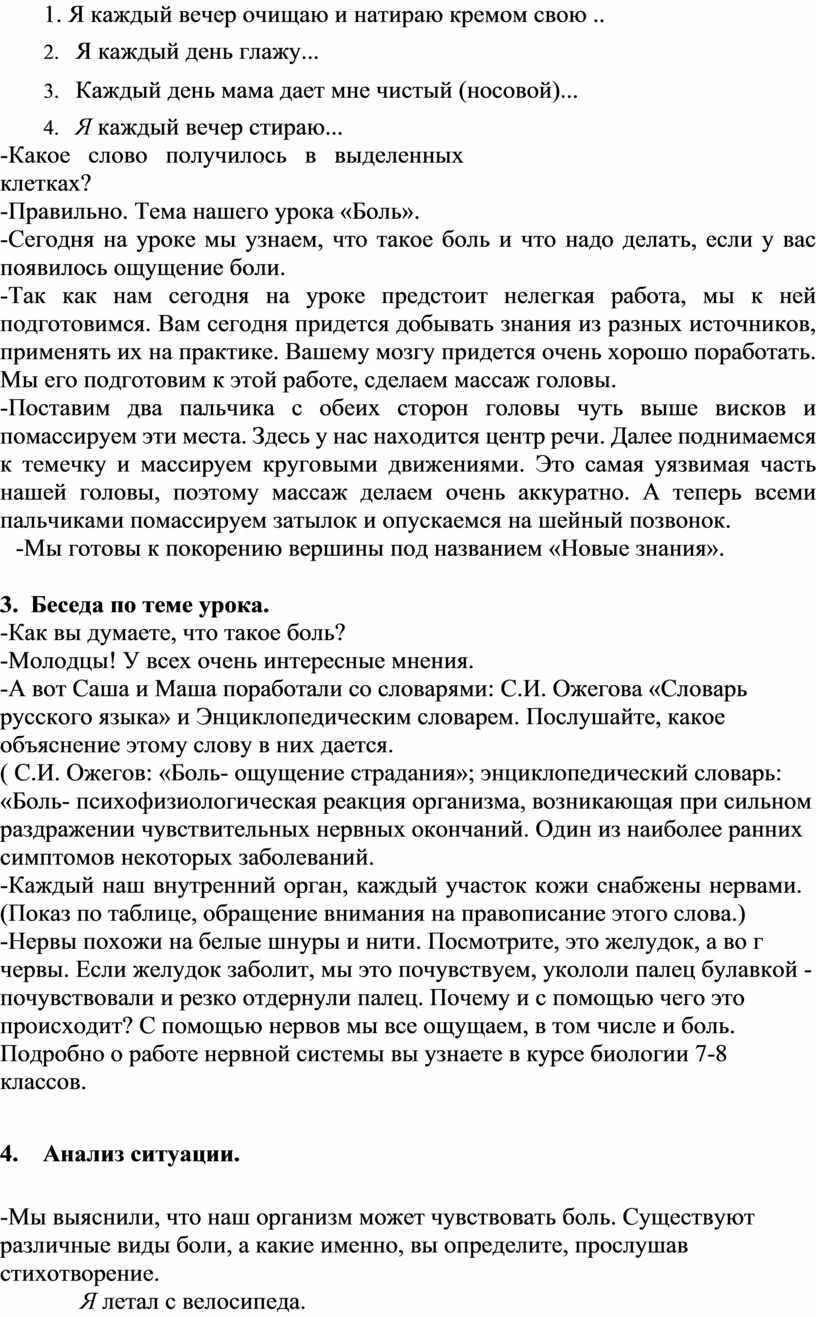 -Сегодня на уроке мы узнаем, что такое боль и что надо делать, если у вас появилось ощущение боли.