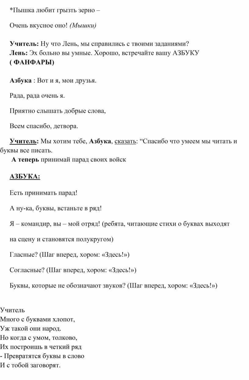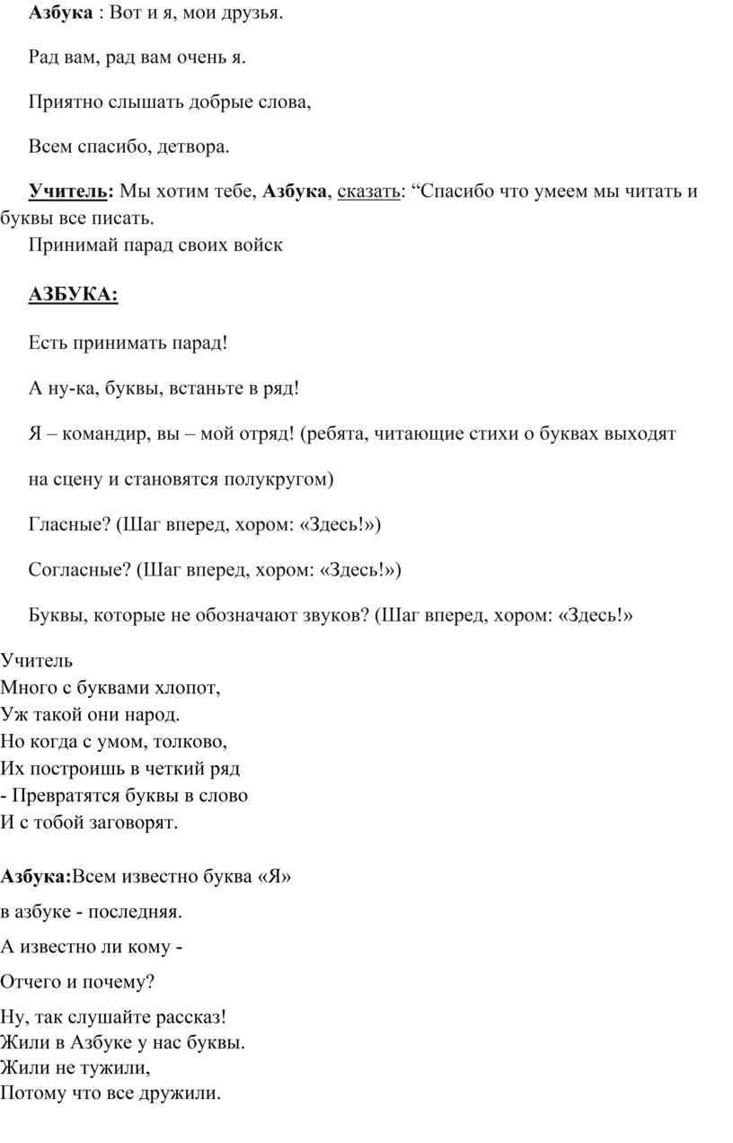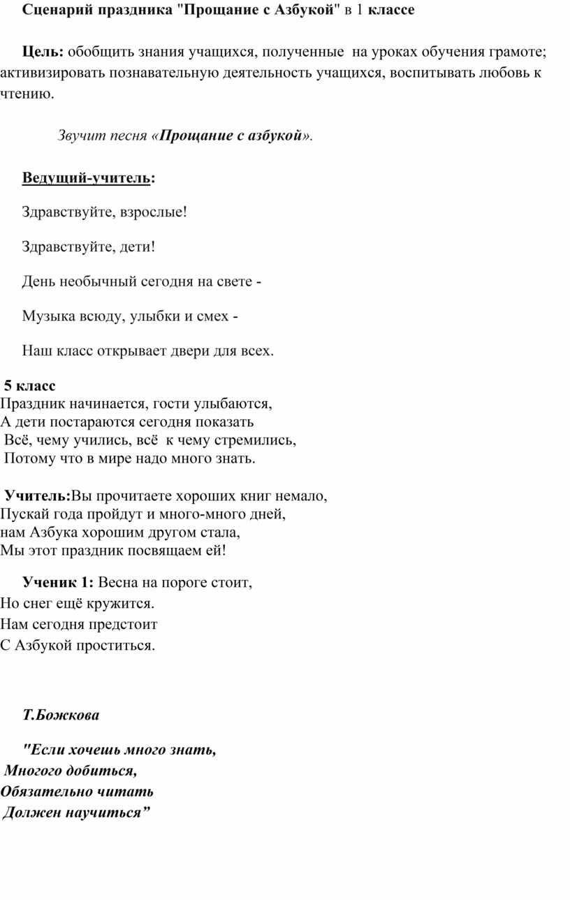 Cценарий праздника "Прощание с Азбукой" в 1 классе
