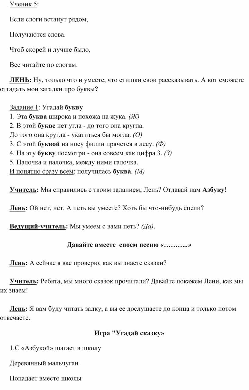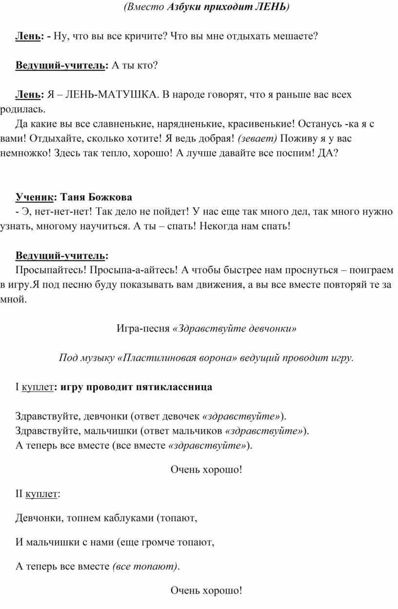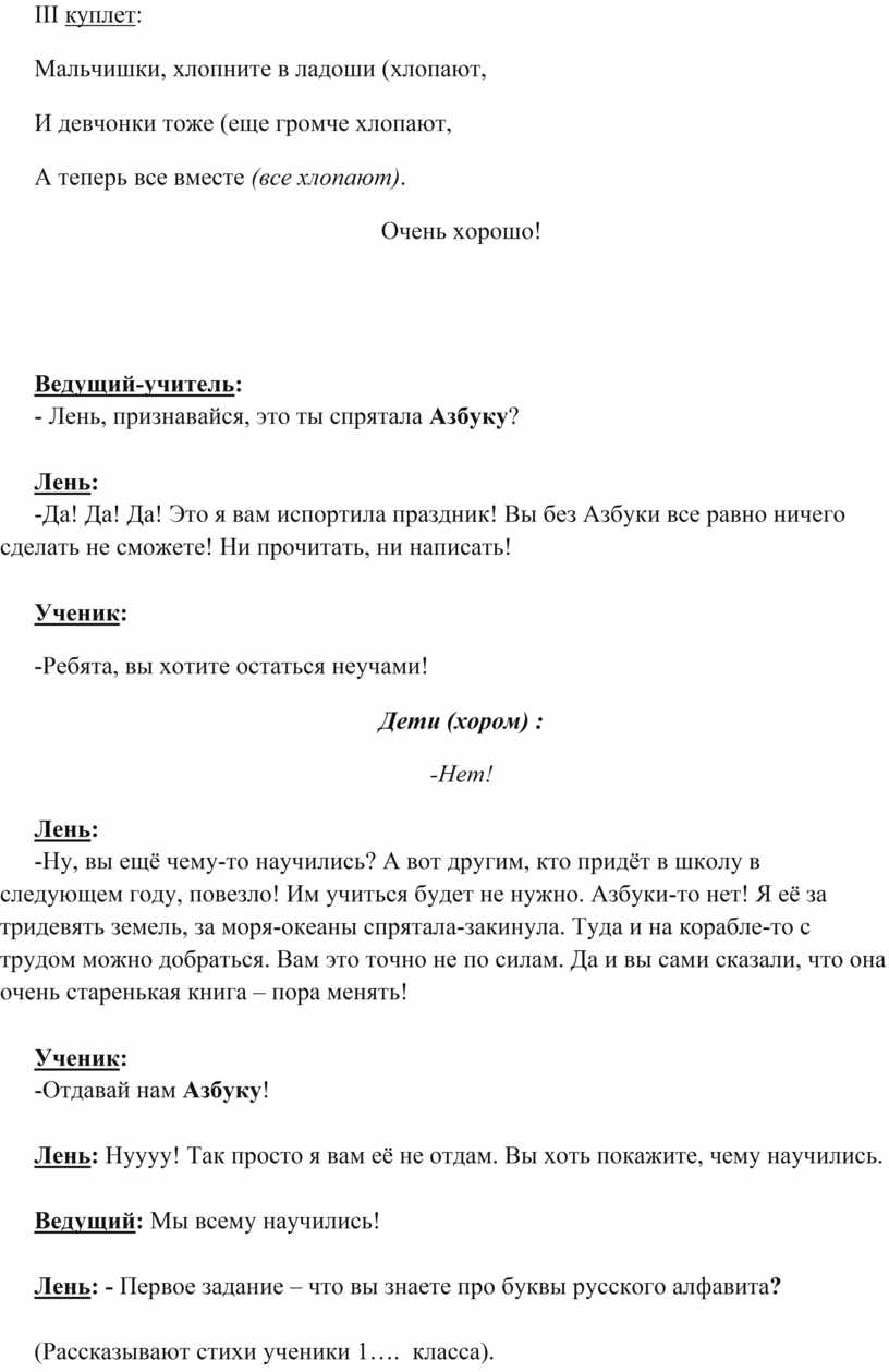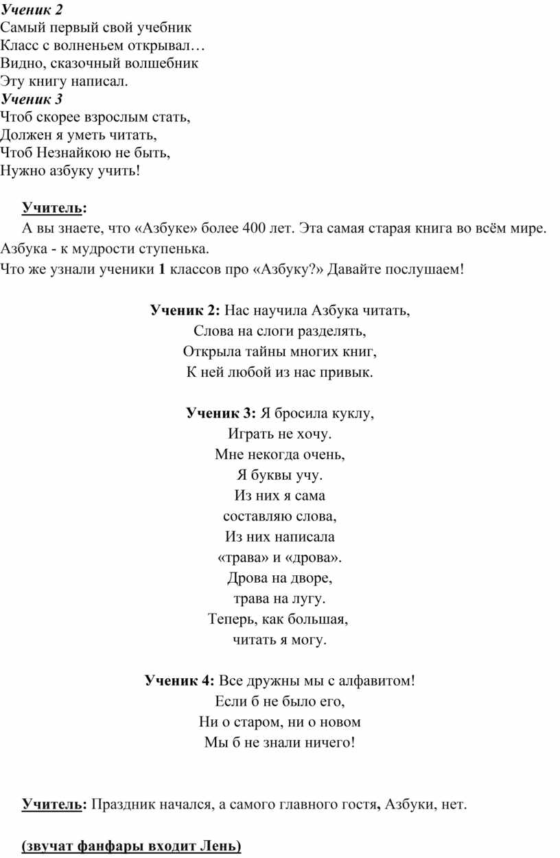 Cценарий праздника "Прощание с Азбукой" в 1 классе