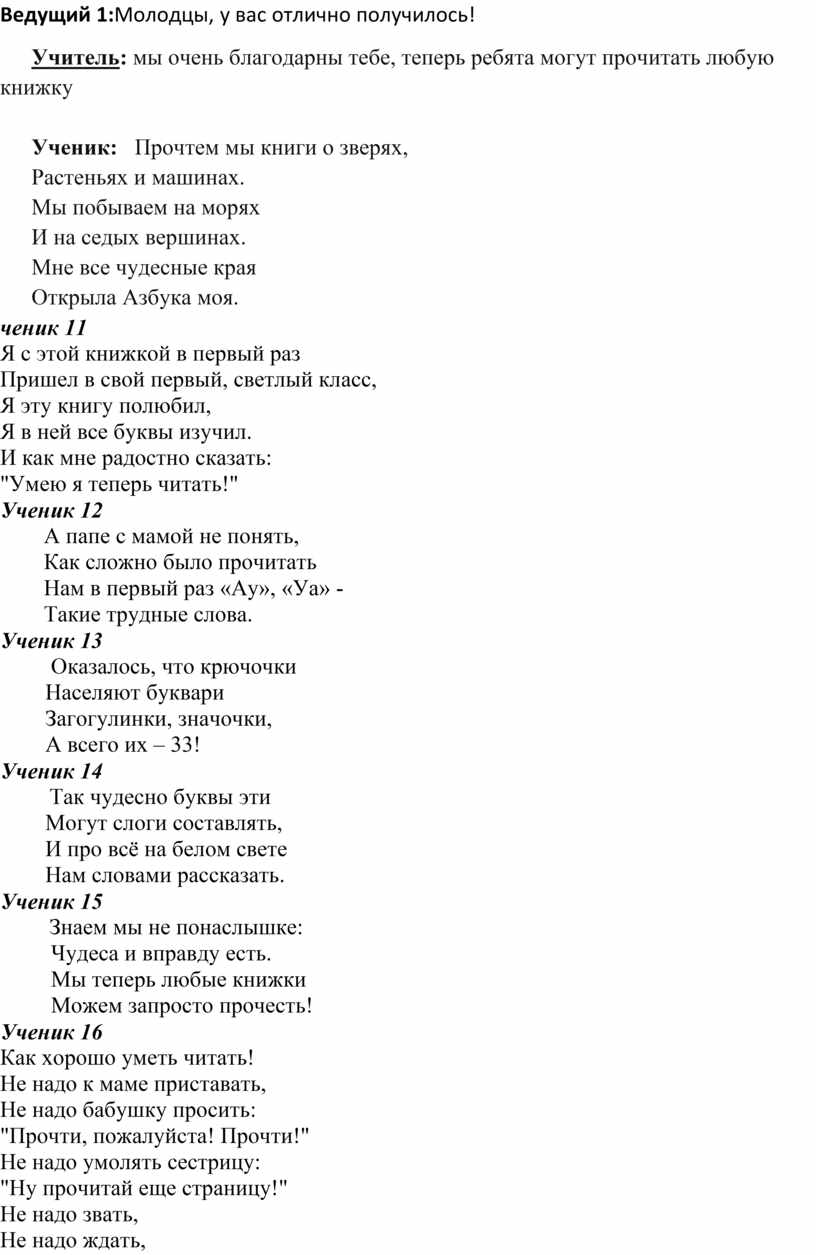 Учитель: мы очень благодарны тебе, теперь ребята могут прочитать любую книжку