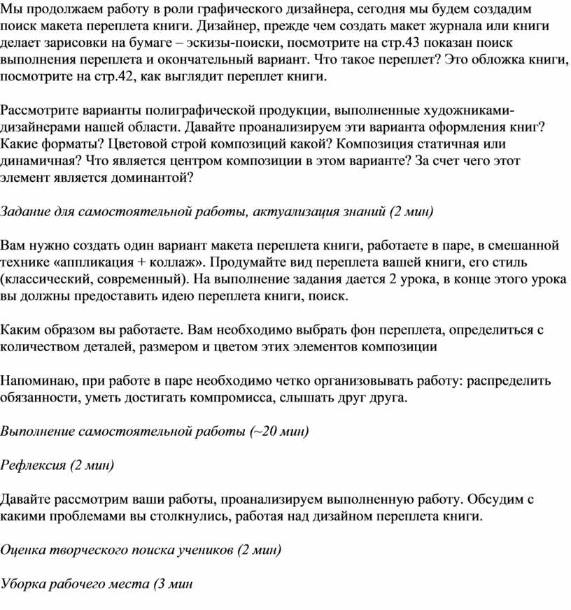 Мы продолжаем работу в роли графического дизайнера, сегодня мы будем создадим поиск макета переплета книги. Дизайнер, прежде чем создать макет журнала или книги делает зарисовки на бумаге – эскизы-поиски, посмотрите на стр.43 показан поиск выполнения переплета и окончательный вариант. Что такое переплет? Это обложка книги, посмотрите на стр.42, как выглядит переплет книги.