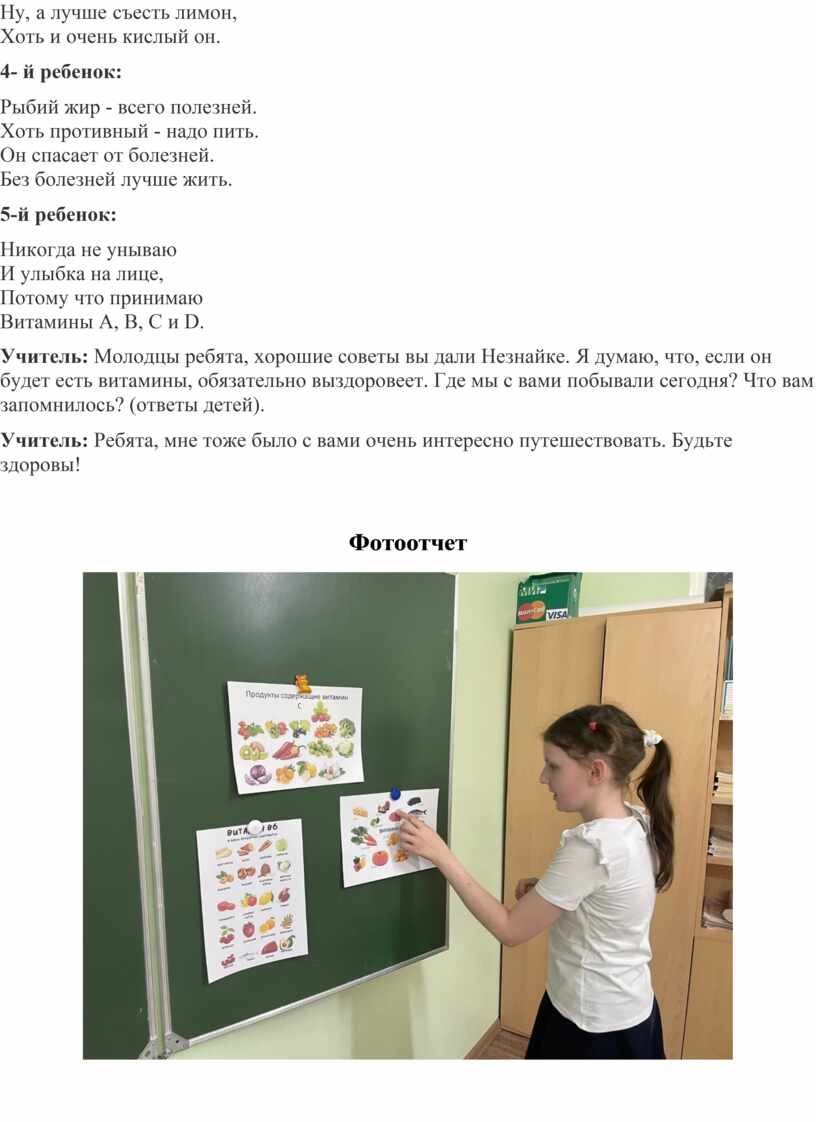 Учитель: Правильно. Сейчас я расскажу вам, что такое витамины и для чего они необходимы человеку.