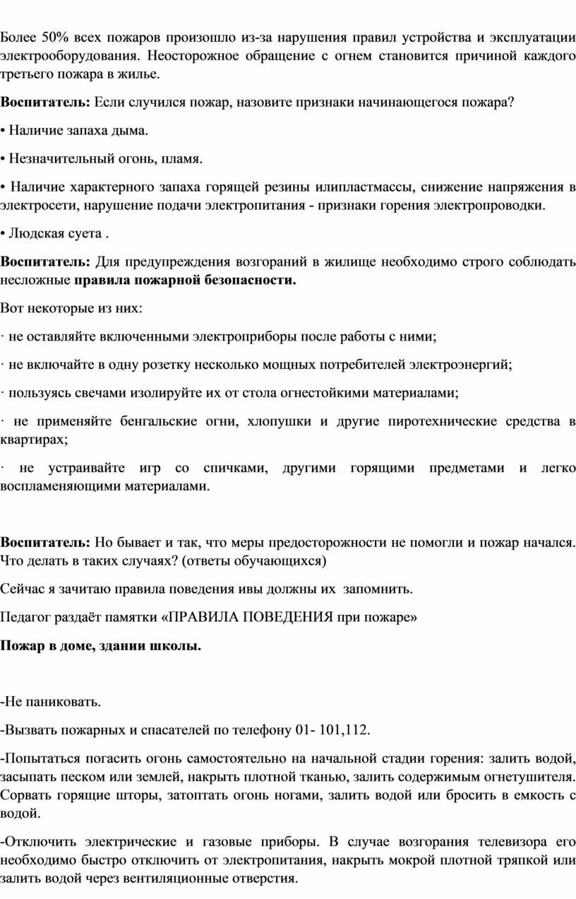 Воспитатель: Но бывает и так, что меры предосторожности не помогли и пожар начался. Что делать в таких случаях? (ответы обучающихся)