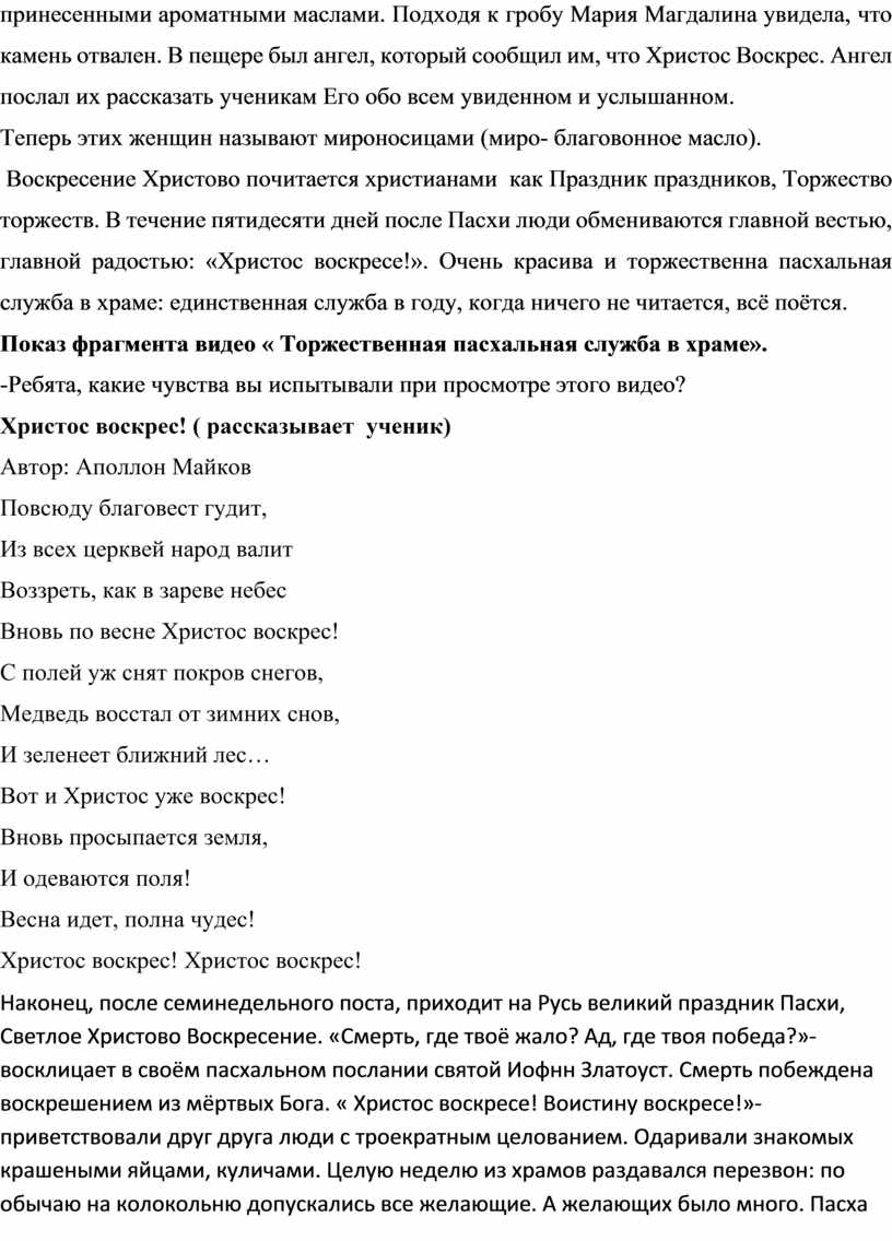 Христос воскрес! ( рассказывает ученик)