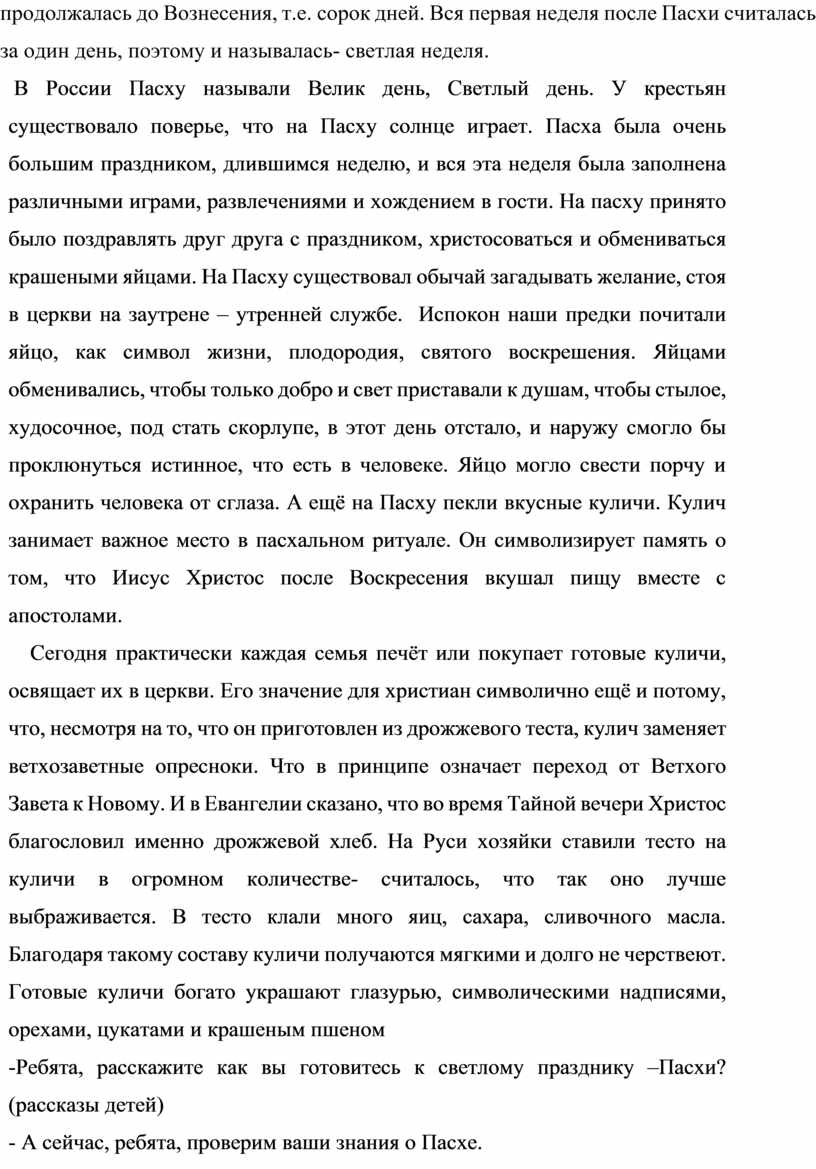 Задачи: познакомить детей с православным праздником Светлой Пасхи, с его