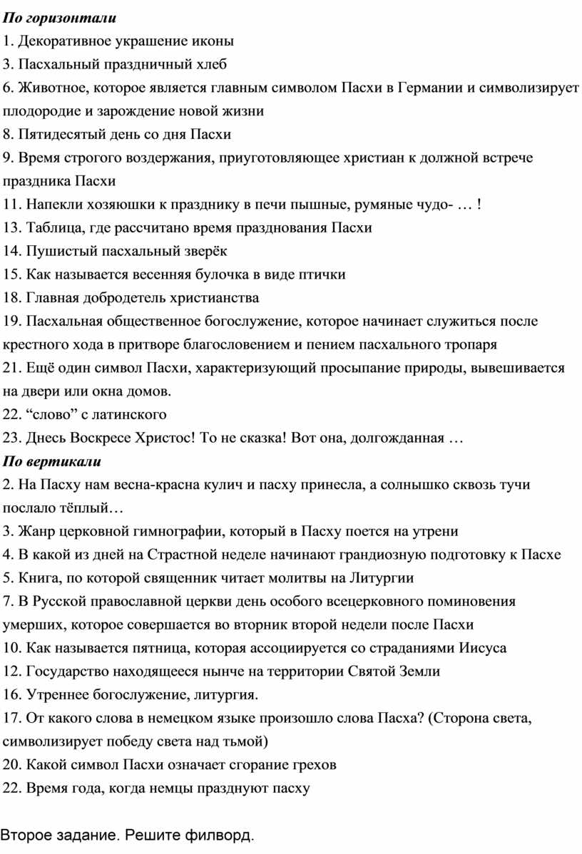 Ответы: Православие, Пасха, Мария, Христос, кулич, христианство, воскрес, светлое, благовест, праздник, воскресение, жизнь.